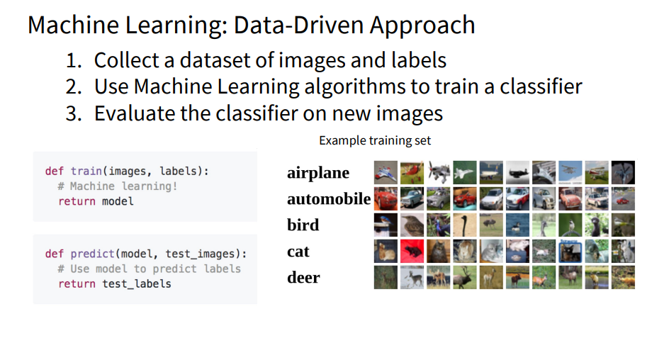따라서 명시적인 규칙 기반 접근법은 확장성이 부족하고 강인하지 못하기 때문에, 다양한 객체를 효과적으로 인식하려면 Data-Driven Approach(데이터 중심 접근법)을 활용해야 하며, 이를 통해 복잡한 패턴을 학습하고 일반화할 수 있는 알고리즘을 개발하는 방법을 탐구할 것입니다.