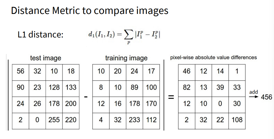 # using the L1 distance (sum of absolute value differences)